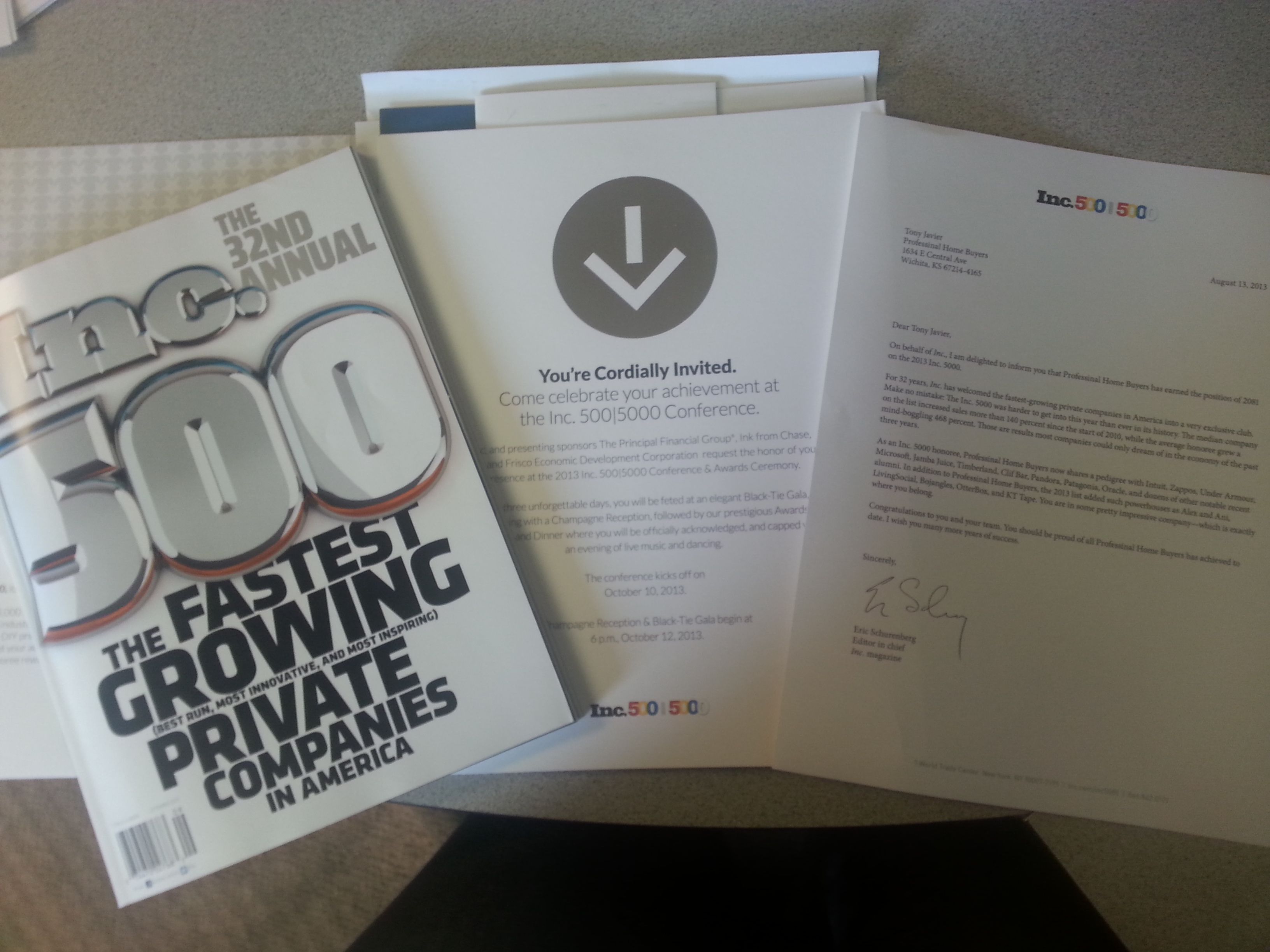 We feel honored. But we also feel proud. Professional Home Buyers was ranked among six other local Wichita businesses for Inc. Magazine’s 2013 List of Fastest-Growing Companies. From the list, we ranked at position No. 2,081, and ranked highest among other private companies in Wichita. Check out more coverage from the Wichita Business Journal, here. ...